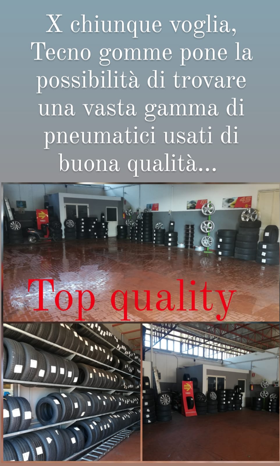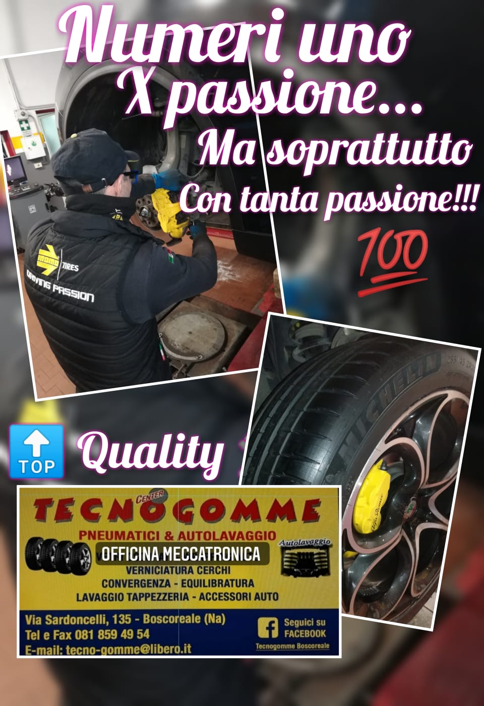 Da Tecnogomme Car service , gommista fondato e gestito da Maurizio Riso a Boscoreale, provincia di Napoli, ci occupiamo della vendita e della riparazione di pneumatici, del cambio gomme stagionale, della bilanciatura e della geometria delle ruote, ma non solo.siamo istallatore di PEDAL SPRINT per più grinta alla tua auto, offriamo servizio di noleggio con conducente - trasferte giornaliera - visite ospedaliere - convegni - aeroporti Capodichino/Fiumicino - possibilità di trasferta 9 posti.